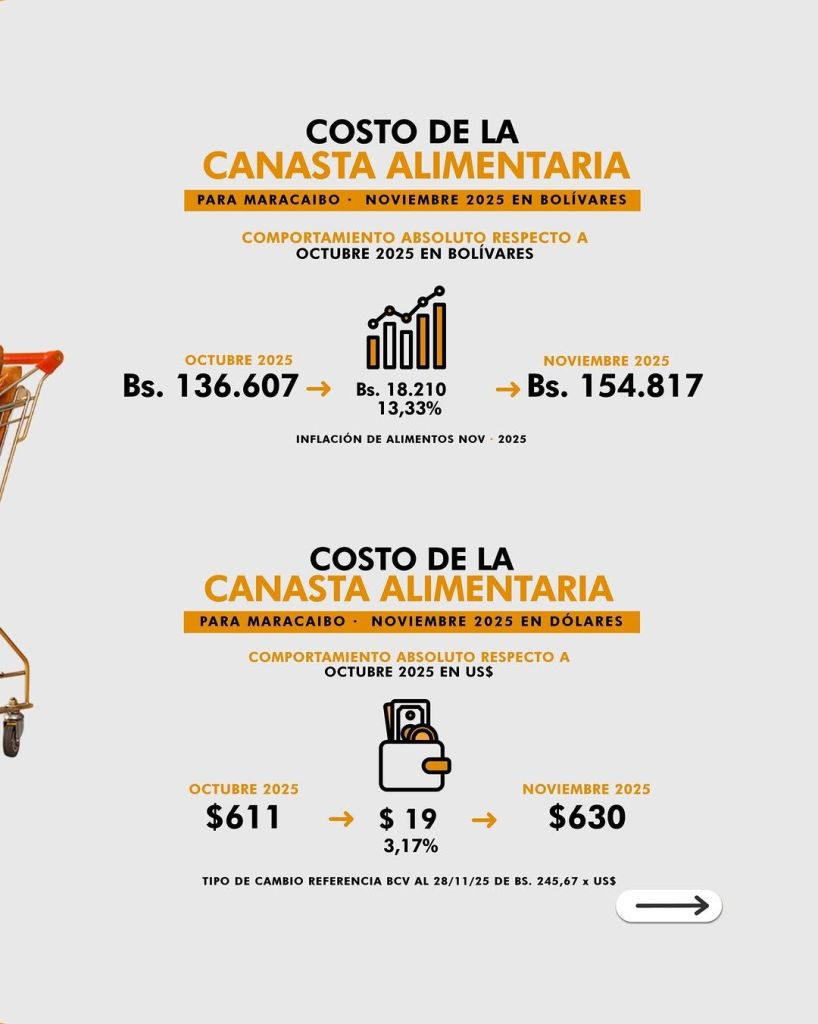 Precios de alimentos esenciales en Maracaibo mantuvieron tendencia alcista durante noviembre 2025