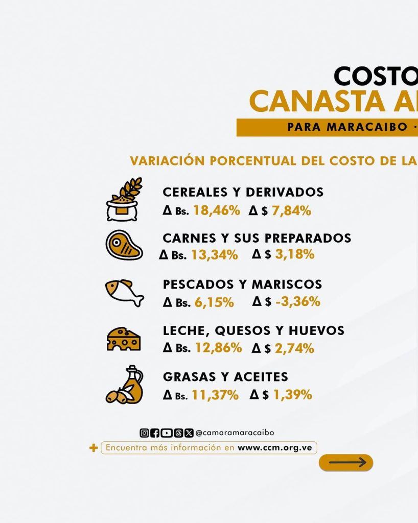 La Cámara de Comercio de Maracaibo subraya que el seguimiento mensual del costo de la canasta alimentaria, constituye un instrumento técnico estratégico para interpretar la evolución de precios y su impacto en los presupuestos de los hogares y además que nos permite identificar tendencias de consumo, evaluar variaciones en los costos de los productos básicos y anticipar posibles movimientos del mercado alimentario.
