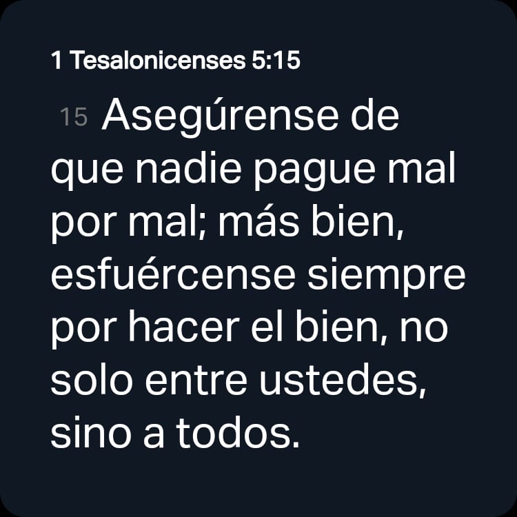 [15] Asegúrense de que nadie pague mal por mal; más bien, esfuércense siempre por hacer el bien, no solo entre ustedes, sino a todos.