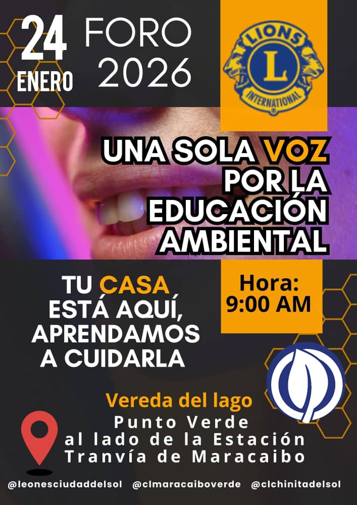 En el marco de la semana por la EDUCACIÓN AMBIENTAL los clubes de Leones Maracaibo Ciudad del Sol, Maracaibo Verde y Maracaibo Chinita del Sol invitamos a toda la comunidad al FORO 2026 *UNA SOLA VOZ POR LA EDUCACION AMBIENTAL*