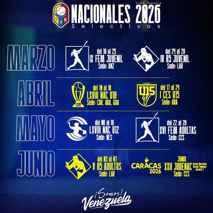 Prensa; FEVEBEISBOL: La Federación Venezolana de Beisbol, a través de su Junta Directiva, anunció los primeros compromisos nacionales para un año 2026 cargado de citas importantes.