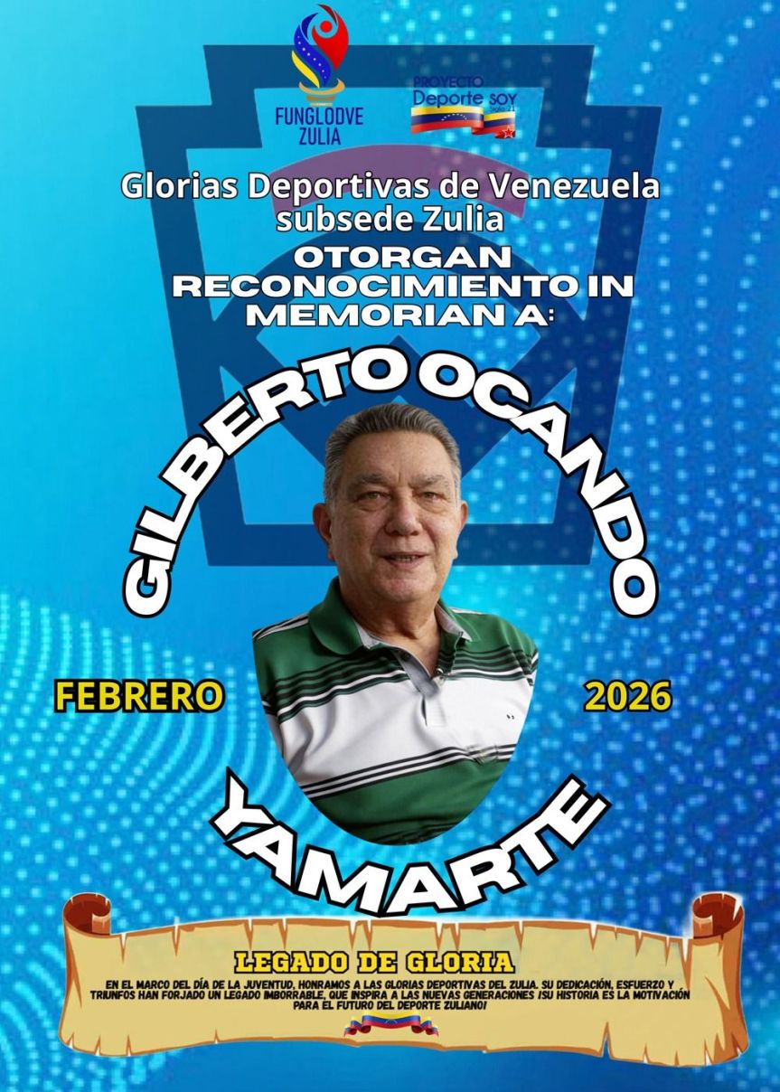 informó Urribarri «que se realizará.un homenaje *IN MEMORIAM* al ingeniero y pionero de las Pequeñas ligas Gilberto Ocando Yamarte ( GOY ), como le llamabamos los que lo conocimos, lamentablemente el hombre impulsor de este movimiento de niños y jovenes , cambio de paisaje pero se mantiene vivo en nuestros corazones, Gilberto el tambien Hermano del creador de los Niños Cantores del Zulia, Don Gustavo Yamarte , se encuentran en la eternidad con el señor, nos dice Luis Urribarri, que a todos los miembros de esta organizacion nos honra entregarle a GOY el *LEGADO DE GLORIA*,