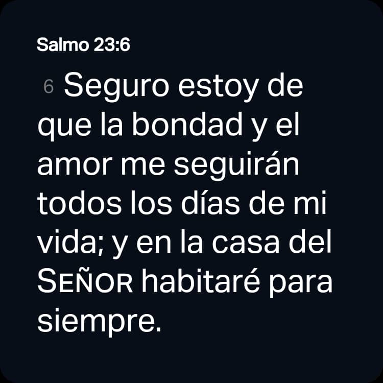 [6] Seguro estoy de que la bondad y el amor me seguirán todos los días de mi vida; y en la casa del Señor habitaré para siempre.