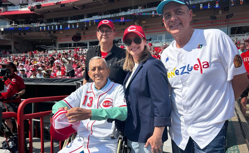 El venezolano David Concepción fue honrado por la organización de los Rojos en el estadio «Great American Ball Park», de Cincinnati, en la jornada inaugural de la campaña 2026 de las Grandes Ligas en esa ciudad, el jueves 26 de marzo de 2026.