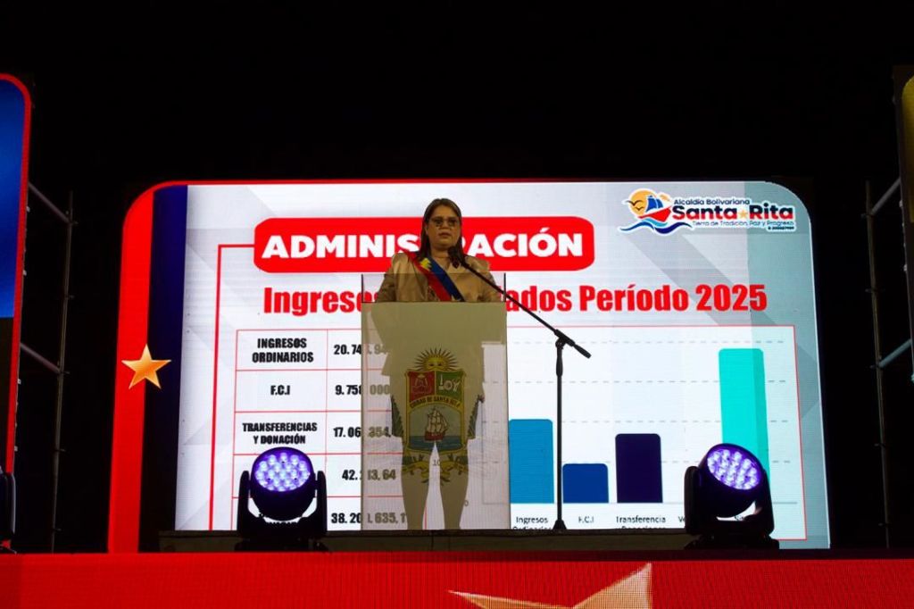 Mcpio. Santa Rita.- En un ejercicio de transparencia que marca un hito en la vida política de la Costa Oriental del Lago, la alcaldesa del municipio Santa Rita, Liz Carolina Piña, presentó ante el soberano su Informe de Gestión correspondiente al ejercicio fiscal del periodo agosto-diciembre 2025. El acto, cargado de un profundo simbolismo y sentido de pertenencia, tuvo lugar la noche de este viernes 27 de marzo en una Plaza Bolívar desbordada por el fervor popular, donde la mandataria desglosó con minuciosidad los avances de sus primeros 146 días de gobierno, fundamentados en los principios de eficiencia, precisión, honestidad y un compromiso inquebrantable con su gentilicio.