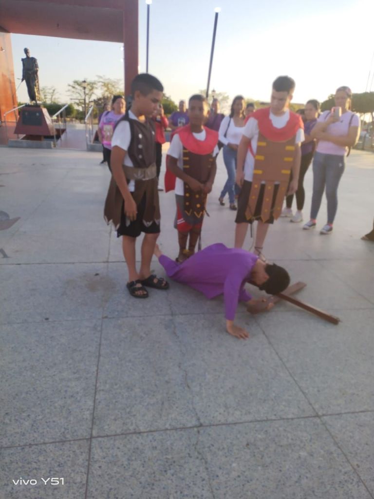 La actividad tuvo como objetivo escenificar el camino que Jesucristo. realizó llevando la cruz hasta su lugar de la crucifixión. Un  recorrido que  contempló 14 estaciones representando los momentos importantes de la Pasión de Cristo, desde su la condena a muerte por Poncio Pilato (gobernante de la provincia romana de Judea) hasta el entierro del profeta.