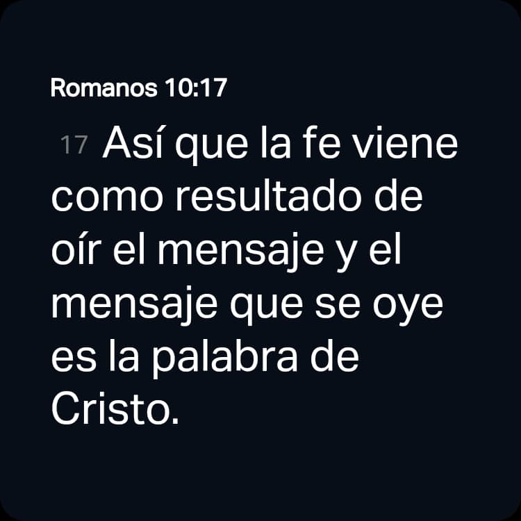 [17] Así que la fe viene como resultado de oír el mensaje y el mensaje que se oye es la palabra de Cristo.