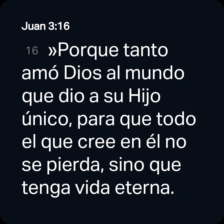 [16]  »Porque tanto amó Dios al mundo que dio a su Hijo único, para que todo el que cree en él no se pierda, sino que tenga vida eterna.