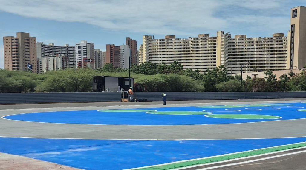Ramírez especificó que los trabajos iniciaron con la rehabilitación de la pista principal, donde se colocaron 200 toneladas de asfalto en caliente tipo 3, mientras que en las áreas externas se ejecutaron otras 180 toneladas.